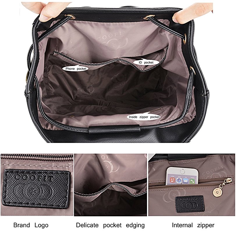材料更新到质量好的PU皮革。 这设计简单大方,看起来非常时尚! 大尺寸:11.43 x 14.38 x 6.7in(W * H * D)。 一个拉链后袋:5“×4”,足够大,以适应标准尺寸的智能手机; 背包内有3个口袋:一个拉链侧袋(6.5“x 4”深),两个开口袋(4.5“x 3.5”和4“x 3.5”)。 可调节肩带长度:37“最长,21”最短。 顶部开口是可扩展的2侧拉链,它是大约12.5“宽边拉链解压缩或9”宽边拉链拉链。 足够的空间携带你所有的日常必需品。