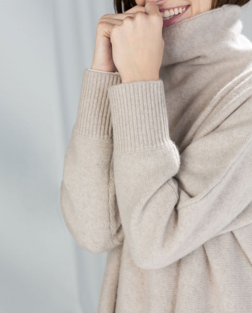 所以羊绒的轻柔触感真的不是一般材质能比,对于肌肤敏感妹子,一件纯正的羊绒衫绝让你穿上就不想脱下。加之羊绒本身来自于高纬度抗旱地区,其保暖性绝佳,冬日里最温暖的内搭就是它。