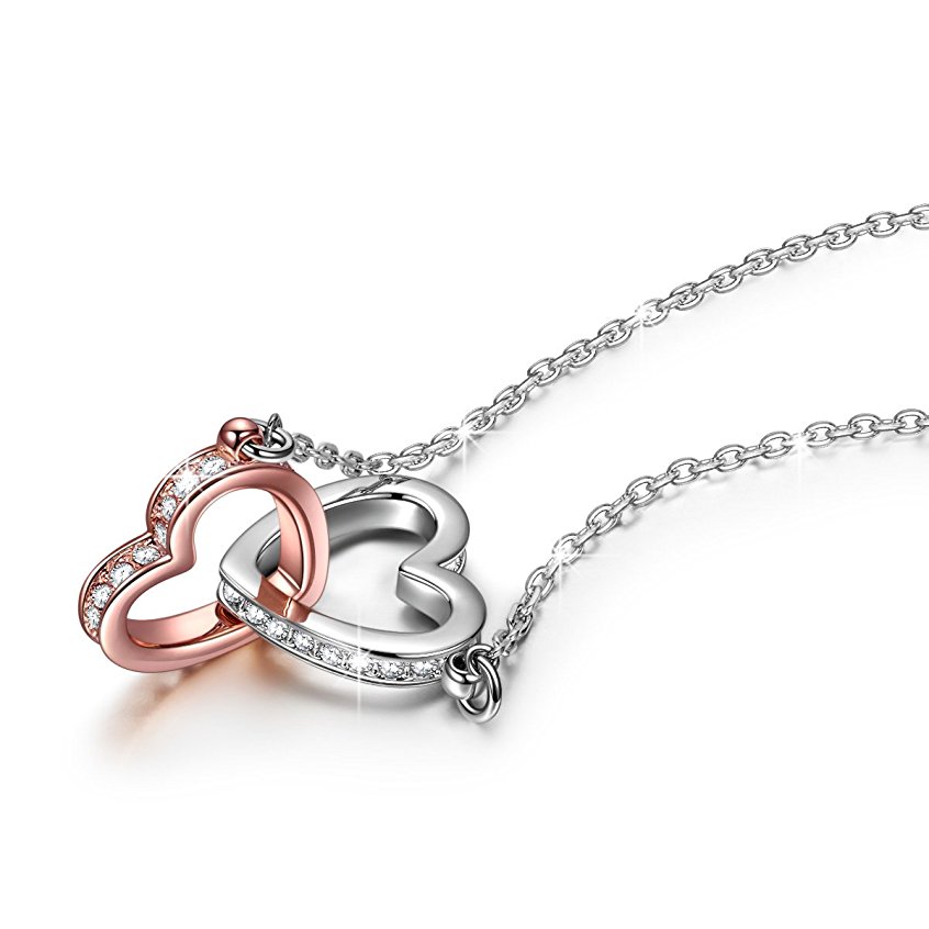 吊坠尺寸:每颗心0.6 * 0.6英寸,链长:17.5 + 2英寸。 环保型白金和玫瑰金镀锌合金,无铅和无镍,无害健康,通过瑞士SGS检验标准。