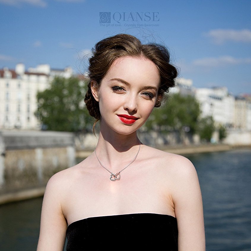 $23.39 $99 Qianse LOVE You Forever Lettering Double Heart Elegant Crystal Pendant Necklace, Love Confession