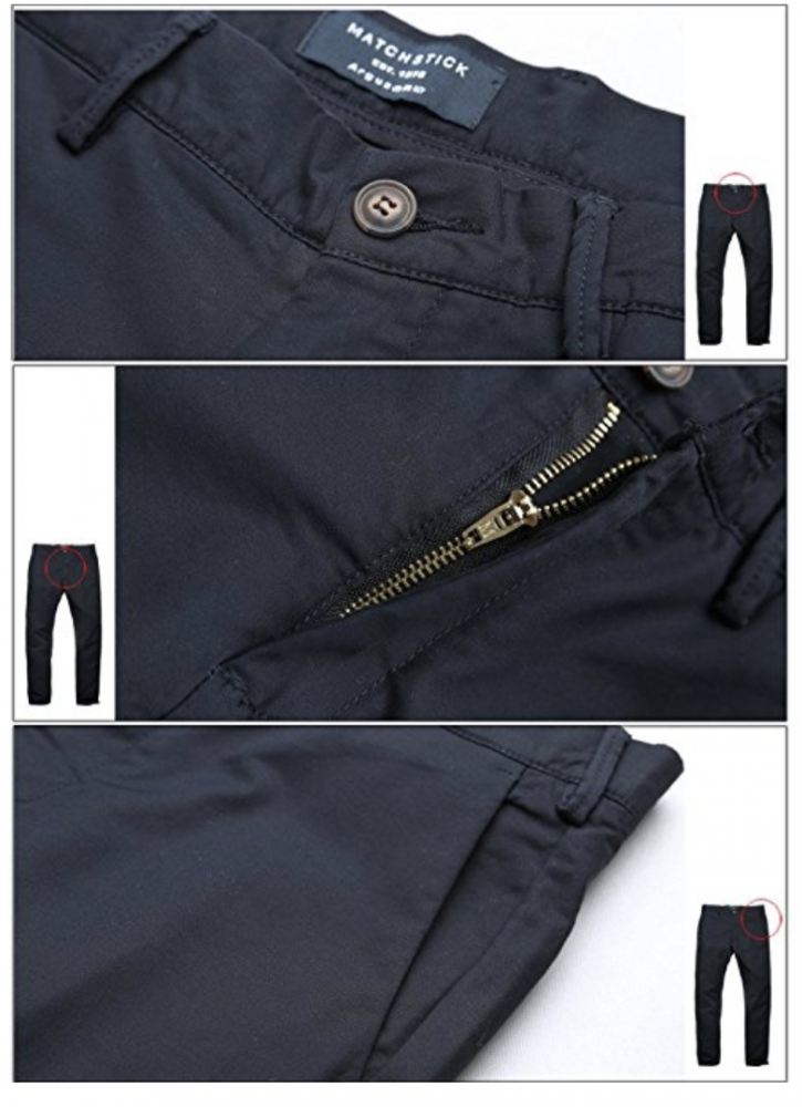 两个侧缝口袋,两个后贴边口袋/拉链式按钮