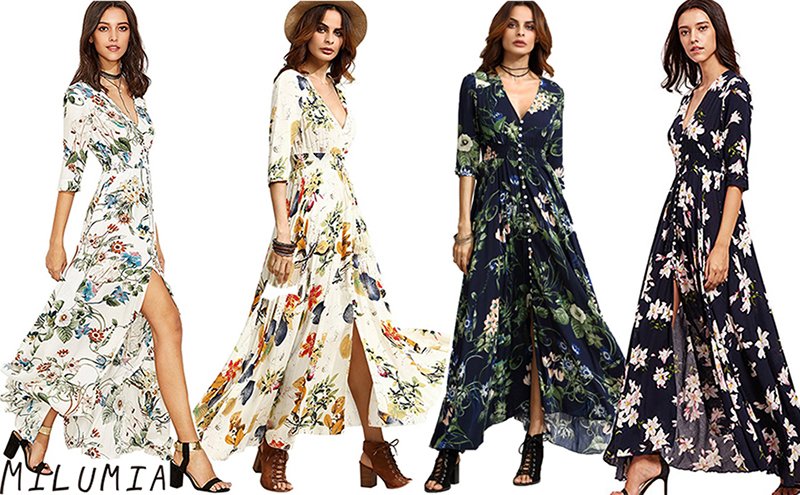 $29.99 Milumia Women's Button up Split Floral Print Flowy Party Maxi Dress