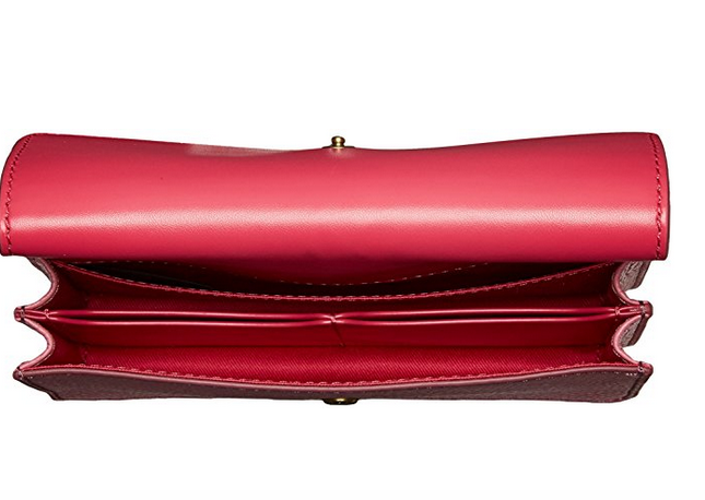 FOSSIL Mila Mini 女士斜挎包 仅售$44.99,免运费。采用真皮材质,翻盖磁扣开阖,2个卡位将主袋分隔成2个分区,容纳性能不错,尺寸约为16.5×3.8×11.43cm。款式甜美可爱,适合逛街休闲时使用。
