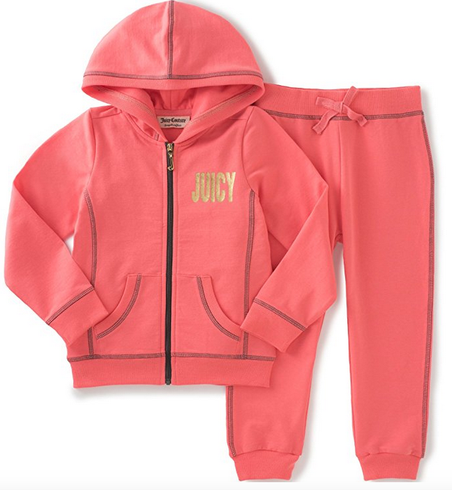 Juicy Couture橘滋 女童连帽运动套装, 现仅售$11.67。四色可选,都有好价。95%棉+5%弹性纤维混纺面料,柔软舒适,上身版型非常好,还很容易和宝宝配成亲子装。