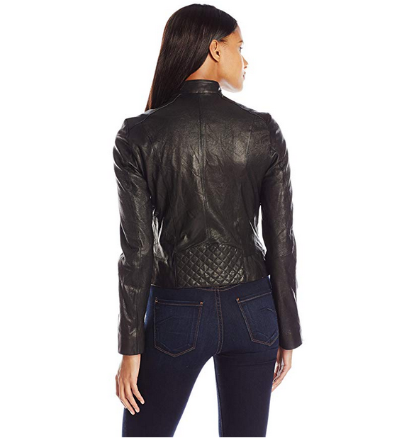 Cole Haan Washed Leather Moto 女款真皮机车夹克,原价$398, 现仅售$67.47, 免运费!目前黑色S码超好价! 商品描述为100%其他纤维材质,有用户评论中说明为皮革材质。
