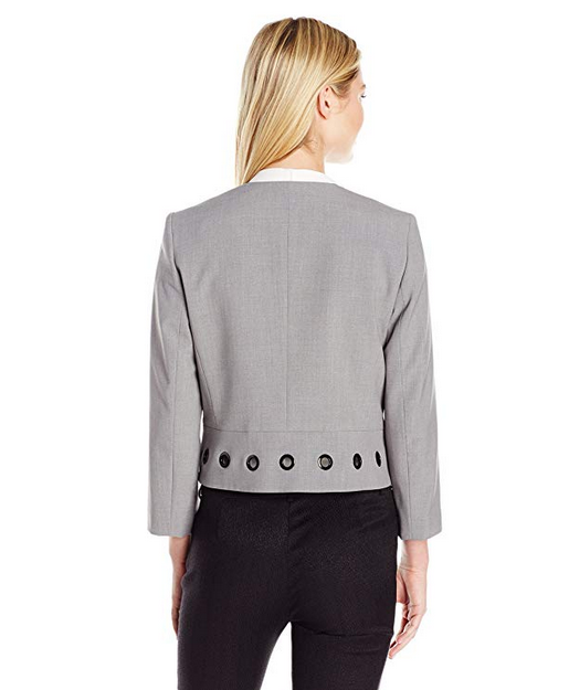 Nine West Taylor Stretch Flyaway 女款时尚弹力小夹克, 现仅售$21.21。超有大牌的设计感~ 采用64%涤纶,32%Rayon和4%弹性纤维,下摆还带有镂空设计,上身版型很好。需干洗。