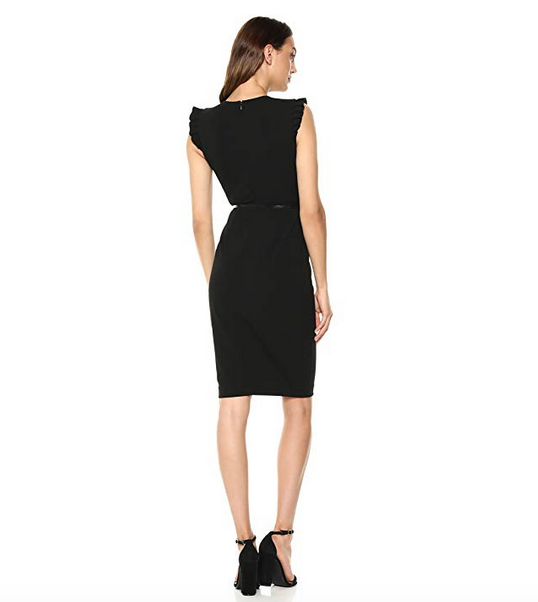 Calvin Klein 女款荷叶边束腰连衣裙,现仅售$35.13, 免运费。修身经典,材质为94%涤纶和6%弹性纤维,很有气质的一款美裙!