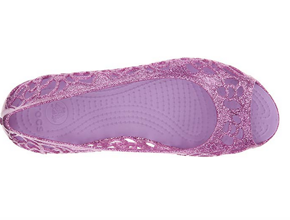Crocs Isabella Glitter GS Flat 大女童款凉鞋, 现仅售$11.71,目前图片色大童尺码6码此价,合成材质,蕾丝镂空设计,超级好看,小公主的款式!