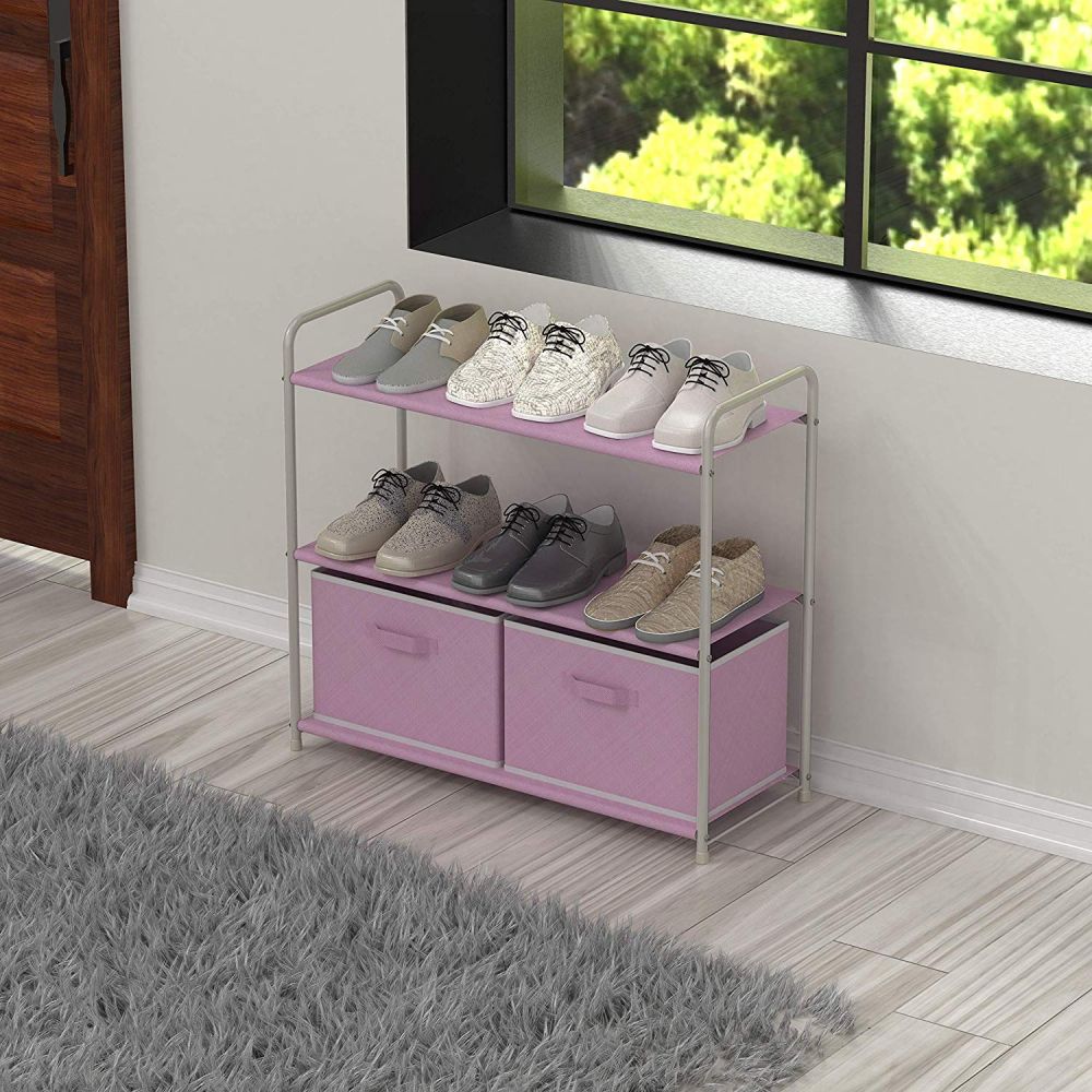 Simple Houseware 简易3层收纳架, 带2个抽屉。设计简单,安装也更轻松。樱花粉和白色的温柔组合,很适合用于收纳宝宝的物品。搭配两个收纳抽屉,轻松收纳零碎小物。