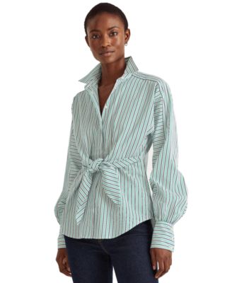 Petite Stripe Puffed Sleeve Tie-Front Top