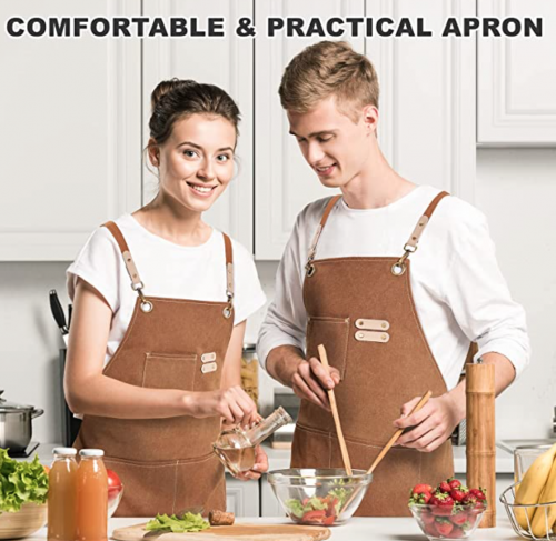 点击价格下方15% off coupon, 折扣码7UNSA5GG。专业围裙由精选的棉帆布制成,更耐用。