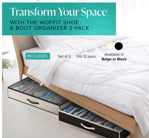 春季清洁整理有理想的解决方案。 2个床下鞋子收纳收纳架, 即可减少杂乱并整理24双鞋。收纳箱由坚固的侧面、坚固的底座和坚固的加固手柄。