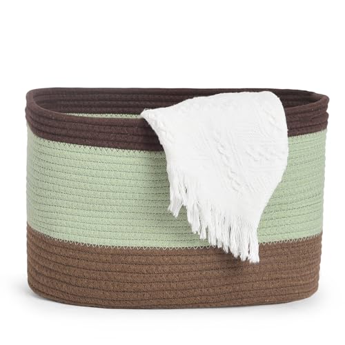 MONKISS 棉绳篮,用于架子、玩具、书籍、玩具、客厅、浴室的储物箱(15.3 英寸 x 9.8 英寸 x 9.5 英寸)绿色和棕色