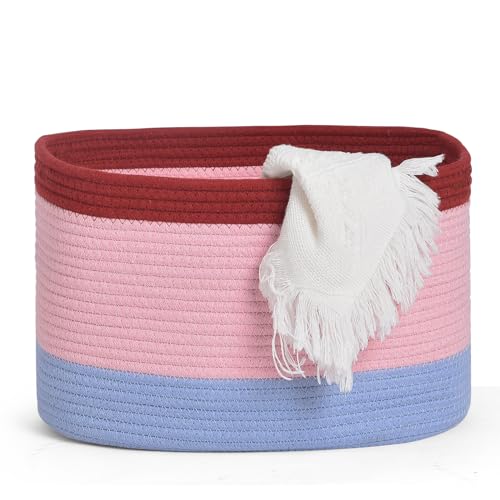 MONKISS 棉绳篮,带把手的编织储物篮,适用于架子、玩具、书籍、玩具、客厅、浴室的储物箱(15.3 英寸 x 9.8 英寸 x 9.5 英寸)粉色和蓝色