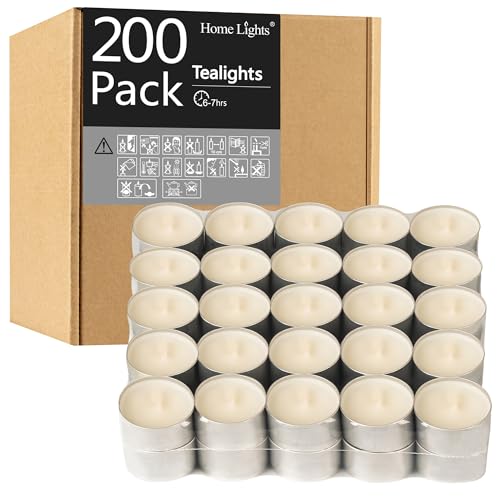 HomeLights 无香型白色茶烛蜡烛 - 300 支装,6 至 7 小时燃烧时间无烟茶灯蜡烛,迷你许愿石蜡蜡烛带棉芯,适用于安息日、婚礼、圣诞节