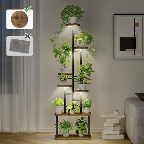 $105.99 室内植物支架带生长灯,MistyJungle 7 层高植物支架适用于室内植物,多种金属植物架展示架带全光谱灯支架,适用于植物、客厅装饰